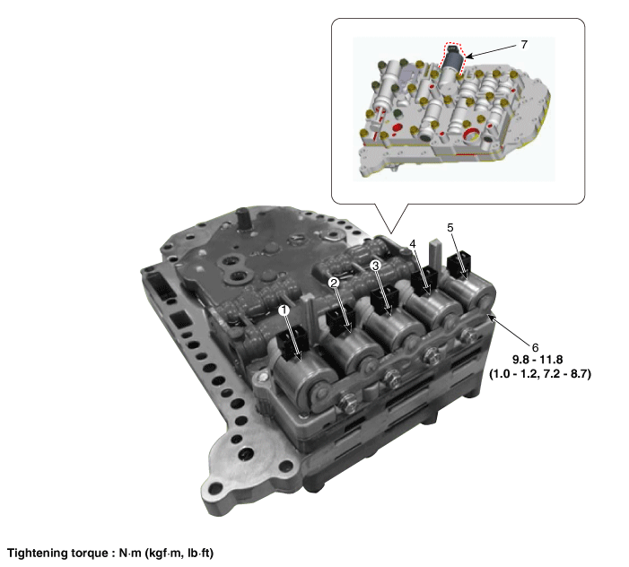 2. Электромагнитный клапан ВКЛ/ВЫКЛ (SCSV-A) 3. Электромагнитный клапан управления гидротрансформатором (PCSV-D) 4. Электромагнитный клапан управления муфтой понижающей передачи (PCSV-C) |
