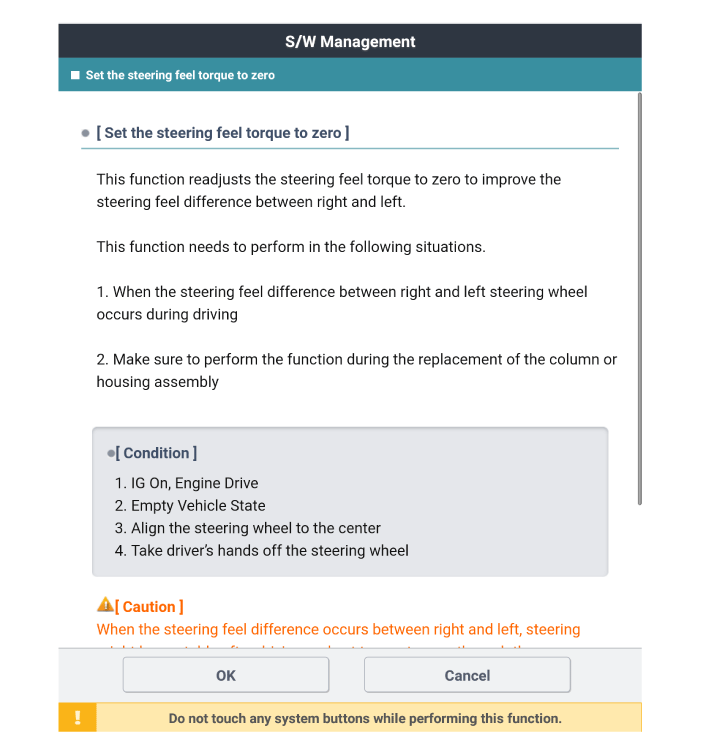 Выберите «Установить нулевой крутящий момент рулевого управления» на экране KDS, затем выберите ОК. |