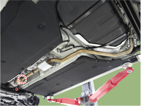 Снимите резиновую подвеску (А) с центрального глушителя. |