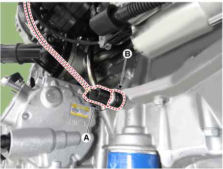 Отсоедините разъем выключателя давления масла (А), затем снимите реле давления масла (В).