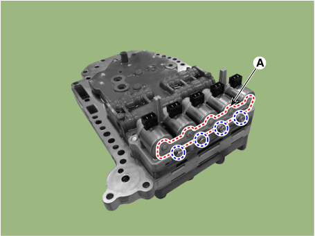Когда TCM подает ток на электромагнитный клапан, переключающий клапан (OD, LR) срабатывает. управляется электромагнитным клапаном. |