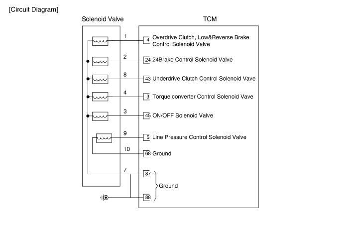Когда TCM подает ток на электромагнитный клапан, гидравлическое давление OD сцепление и тормоз LR управляются электромагнитным клапаном. |
