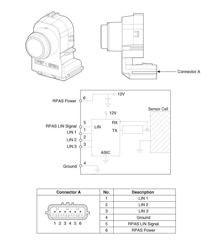 Отсоедините разъем (А) от ультразвукового датчика.
