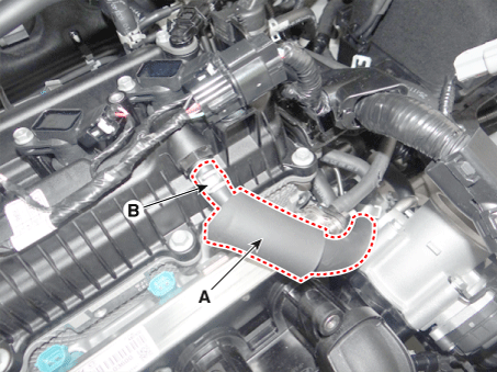 Отсоедините паровой шланг (А) и снимите клапан PCV (В).