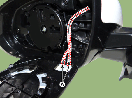Отсоедините разъем привода зеркала (А).
