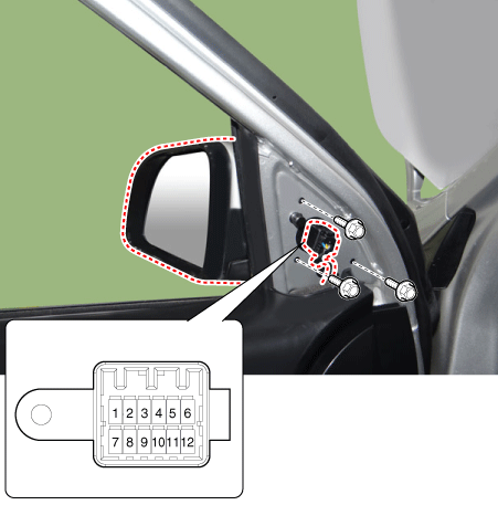 Отсоедините разъем наружного зеркала заднего вида с электроприводом от жгута проводов.