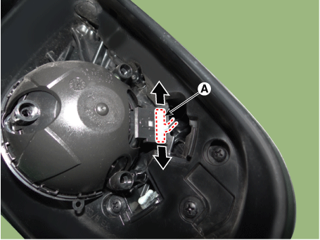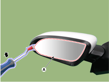 Вставив плоскую отвертку или съемник, как показано на изображении ниже, снимите зеркало (A), приложив кратковременное усилие.