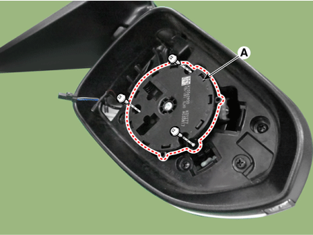 Снимите привод зеркала (А) после ослабления винтов.