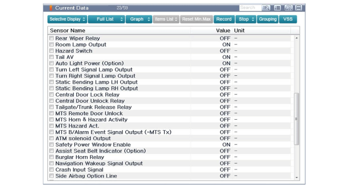 Электрическая система кузова может быть быстро диагностирована на наличие неисправных частей. с помощью системы диагностики автомобиля (KDS/GDS). Диагностическая система (KDS/GDS) предоставляет следующую информацию.