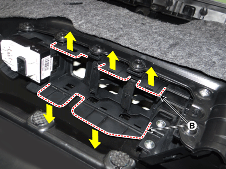 Снимите узел переключателя стеклоподъемника (А), потянув за оба конца держателей переключателей (B).