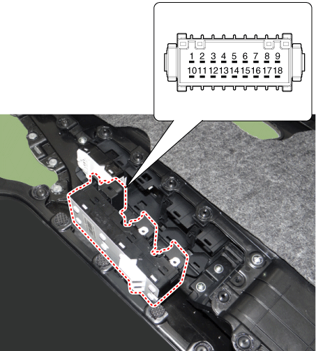 Отсоедините разъем переключателя стеклоподъемника от обшивки двери. [Вспомогательная мощность переключатель окна]