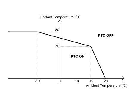 ECM выдает сигнал PTC ON и включает реле PTC 1. Затем контроллер отопителя включает реле PTC 2 и реле PTC 3 с интервалом в 15 секунд.