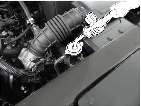 Снимите крышку машинного отделения. (См. Двигатель и трансмиссия в сборе — «Под крышкой моторного отсека») |