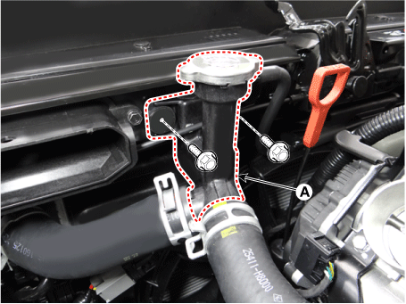 Отсоедините шланги охладителя ATF (А). (только автоматическая коробка передач)