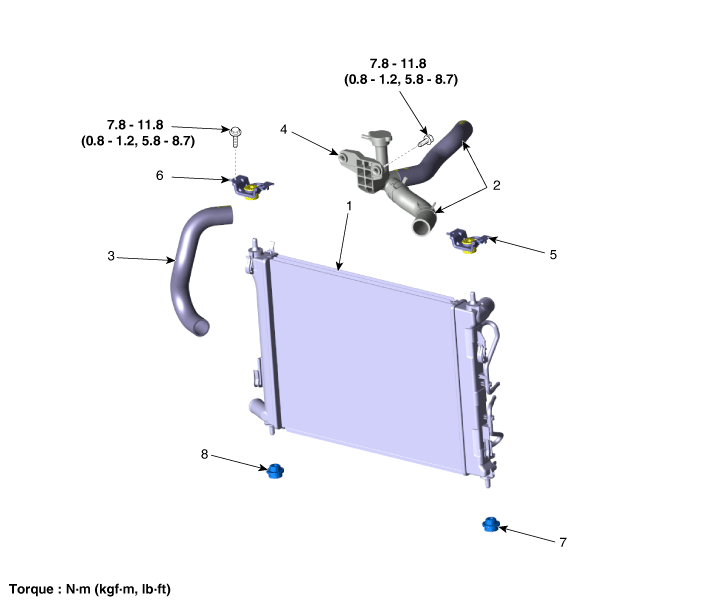 6. Верхний монтажный кронштейн радиатора [правый] 7. Изолятор нижнего крепления радиатора [LH] 8. Изолятор нижнего крепления радиатора [RH] |