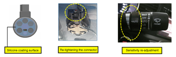 В случае повреждения силикона датчика дождя, как показано на рис.