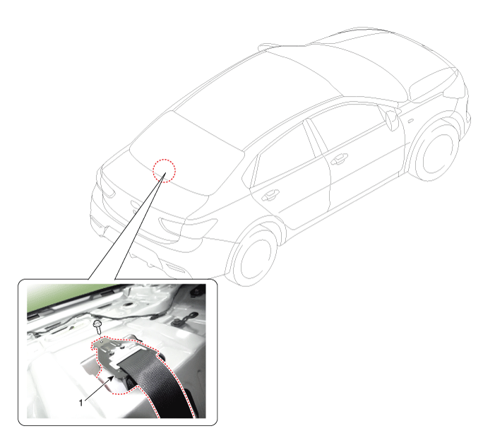 1. Натяжитель ремня безопасности заднего центрального сиденья.