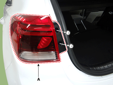Снимите задний комбинированный фонарь (А) после ослабления крепежных винтов.