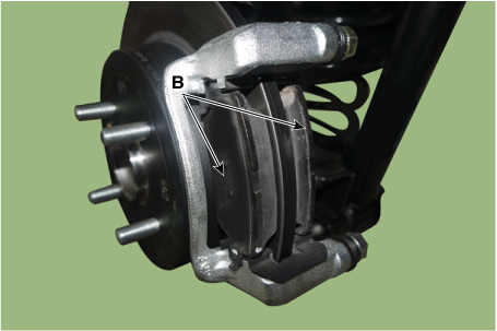 Если износ превышает допустимый, протрите тампоном левый и правый диски и колодки в сборе. транспортного средства. |
