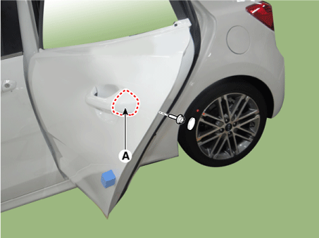 Снимите кожух внешней ручки задней двери (А) после ослабления крепления болт.