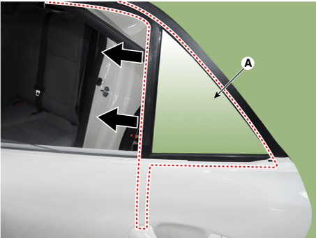 Снимите стекло задней двери (А) после ослабления крепежных болтов.