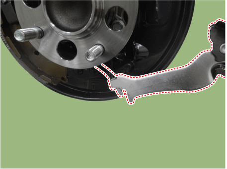 Отпустите стояночный тормоз и снимите задний тормозной барабан. |
