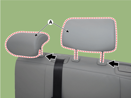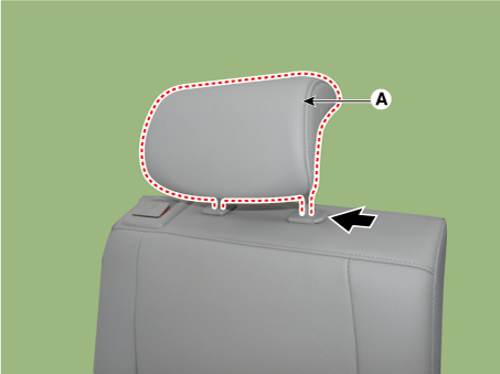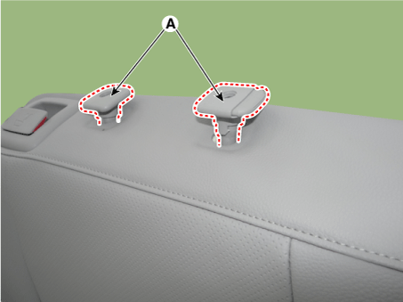 Нажмите на направляющие подголовника заднего сиденья (А), одновременно зажимая обе стороны подголовника. нижнюю часть направляющих и снимите их.
