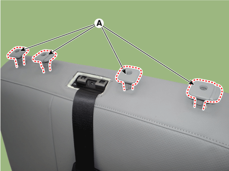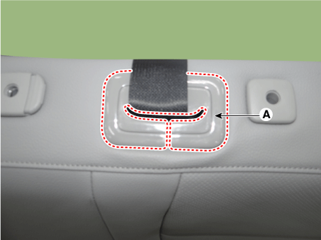Снимите направляющую ремня спинки заднего сиденья (А) с помощью съемника.
