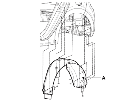 Снимите защитный кожух заднего колеса (А), предварительно ослабив крепежные зажимы и орехи.