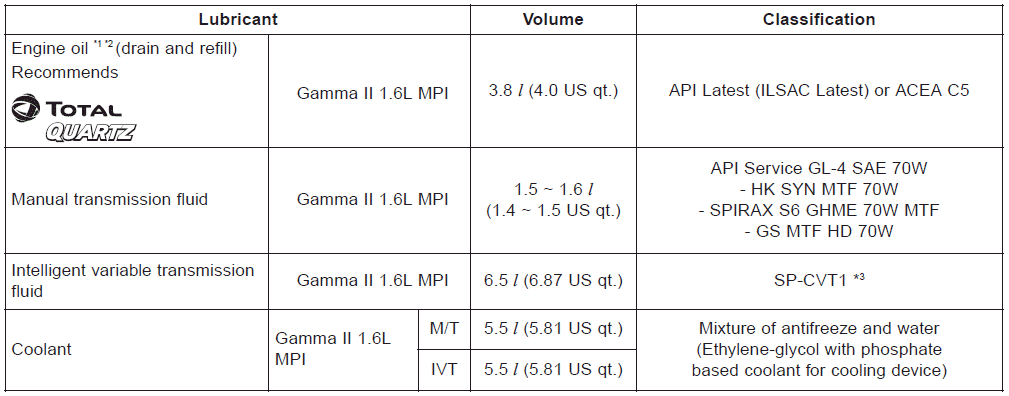 Для достижения надлежащей производительности и долговечности двигателя и трансмиссии используйте только смазочные материалы надлежащего качества. Правильные смазочные материалы также способствуют КПД двигателя, что приводит к улучшению топливной экономичности. Эти смазки и жидкости рекомендуются для использования в вашем автомобиле.