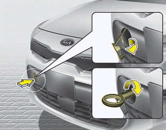 Kia Rio: Буксировка / Съемный буксировочный крюк (передний)