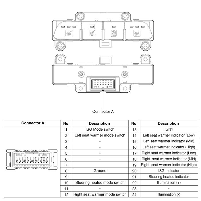 Чтобы предотвратить низкотемпературный ожог, температура обогревателя сиденья автоматически снижаться через определенный промежуток времени. (Условие горения при низкой температуре: более 30 минут при 50°C) |
