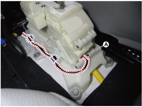 Отсоедините главный разъем (А) и снимите крепление проводки. клипсы с рычага переключения передач.