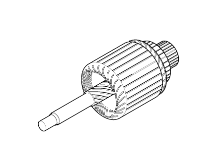 С помощью омметра проверьте отсутствие непрерывности между коллектором (A) и сердечником катушки якоря (B), а также между коммутатором и якорем вал (С). При наличии непрерывности замените якорь.