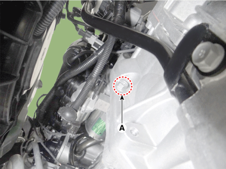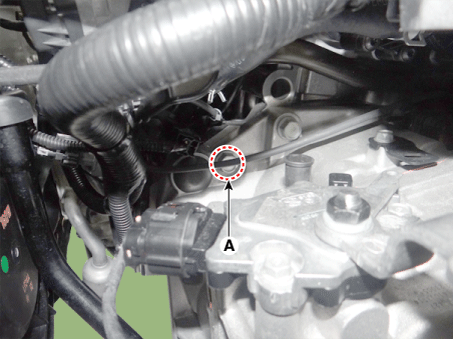 Снимите стартер (А), предварительно ослабив нижний крепежный болт (В).