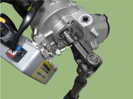 Ослабьте болт, а затем отсоедините узел универсального шарнира от рулевая колонка в сборе.
