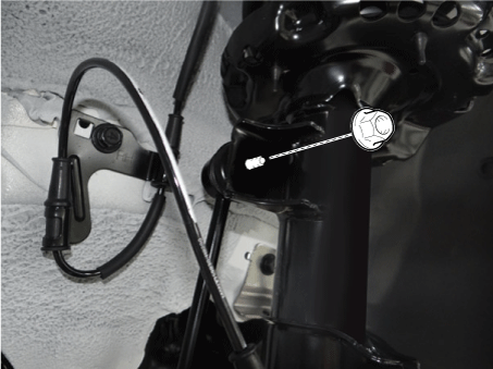 Снимите болт и гайку нижнего рычага (А).