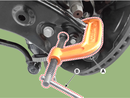 Снимите передний нижний рычаг с переднего поворотного кулака с помощью SST (0K545-A9100).