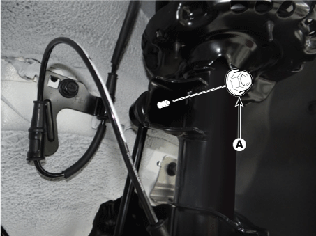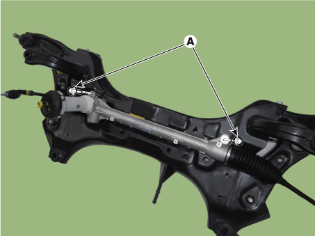 Ослабьте болты (А) и снимите узел стабилизатора поперечной устойчивости.