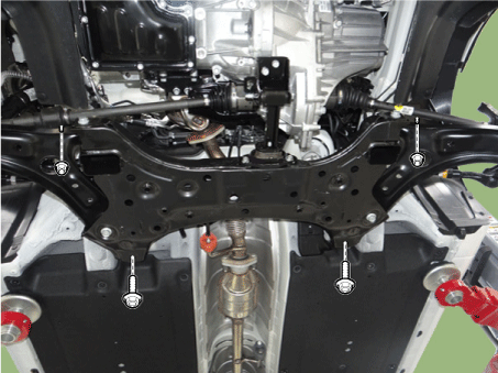 Снимите кронштейн тяги ролика. D 1.4 U2 TCI (см. Механическая система двигателя — «Подвеска двигателя») G 1.0 T-GDI (см. Механическая система двигателя — «Подвеска двигателя») G 1,2 MPI (см. Механическая система двигателя — «Подвеска двигателя») G 1,4 MPI (см. Механическая система двигателя — «Подвеска двигателя») |