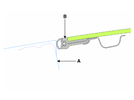 Проверьте высоту ступени между панелью крыши (А) и уплотнителем из стекла. (B), а затем при необходимости отрегулируйте его.