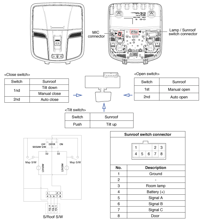 Проверьте целостность цепи между клеммами. Если непрерывность не показано, как указано, замените переключатель панорамной крыши.