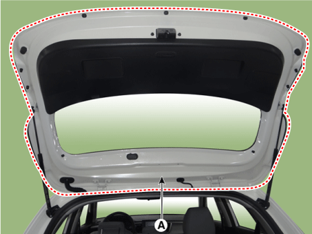 Снимите заднюю дверь в сборе (А) после ослабления крепежных болтов.