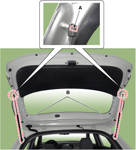 Будьте осторожны, так как задняя дверь может упасть на людей, когда лифты удаленный. Попросите помощника держать дверь багажного отделения открытой или используйте безопасный метод, чтобы держи его открытым. |