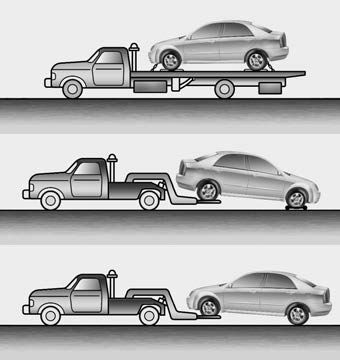 При буксировке коммерческим эвакуатором без использования колесных тележек всегда следует поднимать переднюю часть автомобиля, а не заднюю.