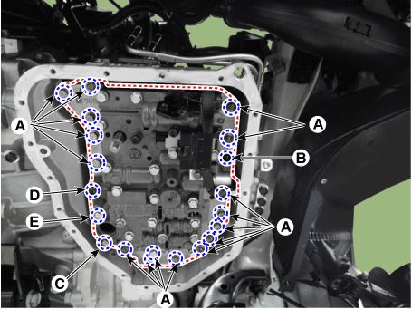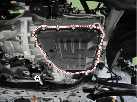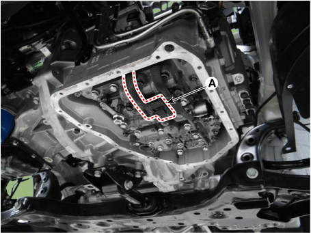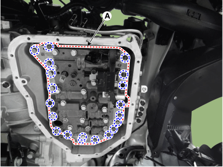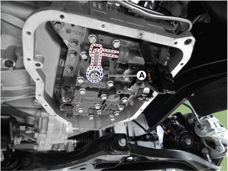 Снимите сливную пробку ATF (A), дайте жидкости стечь, а затем переустановите сливную пробку.
