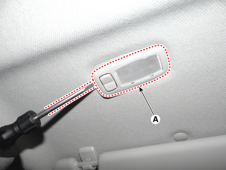 Отсоедините косметический светильник (A) с помощью плоской отвертки.