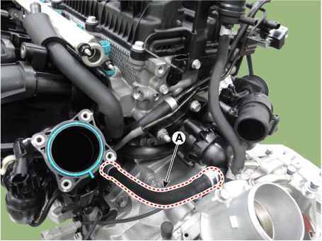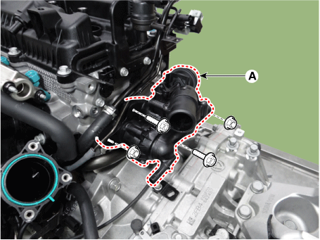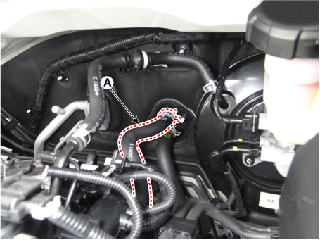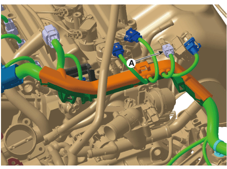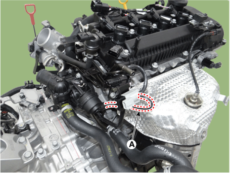 Отсоедините разъем (А) датчика температуры охлаждающей жидкости двигателя (ECTS).