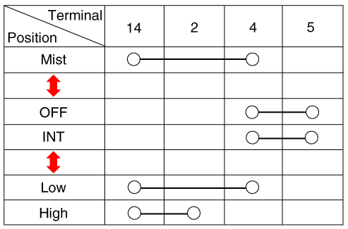 Проверьте целостность цепи между клеммами в каждом положении переключателя, как указано ниже. показано ниже.