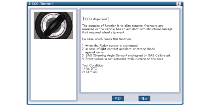 После правильного выбора модели автомобиля выберите «SCC Alignment» из вспомогательных функций в меню GDS.
